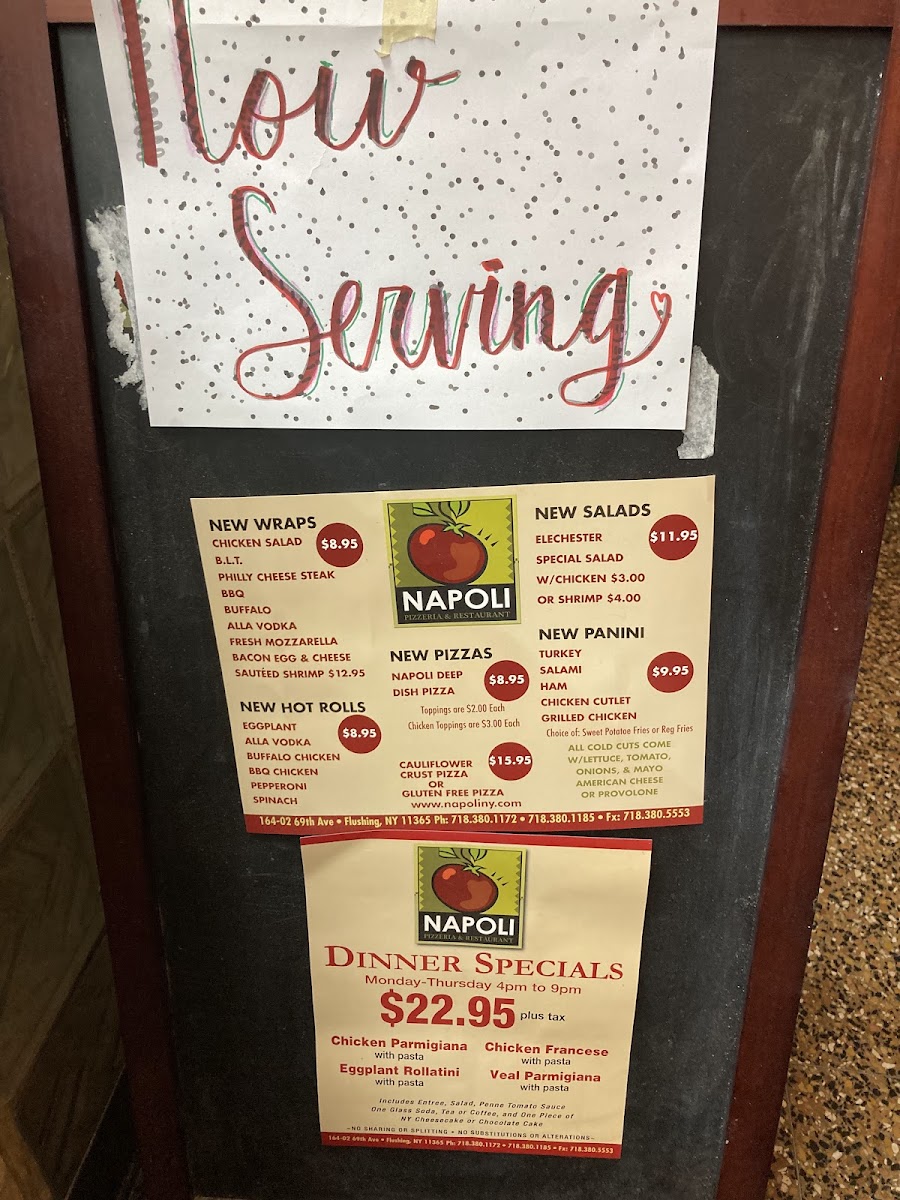 When you walk into Napoli Pizzeria & Restaurant, you’re stepping into a world of authentic Italian flavors. Located at 164-02 69th Ave in Flushing, NY, this cozy spot brings the heart of Italy right to your table. The Napoli Pizzeria & Restaurant Menu features a mouthwatering selection of traditional pizzas, pastas, and fresh salads, all made with the finest ingredients. Whether you’re in the mood for a classic Margherita pizza or a rich, savory lasagna, there's something to satisfy every craving. The menu is a celebration of simple, fresh ingredients, with each dish crafted to highlight the true essence of Italian cooking. Whether you’re enjoying a casual dinner with friends or a cozy meal with family, Napoli Pizzeria & Restaurant offers the perfect combination of comfort, quality, and delicious taste.